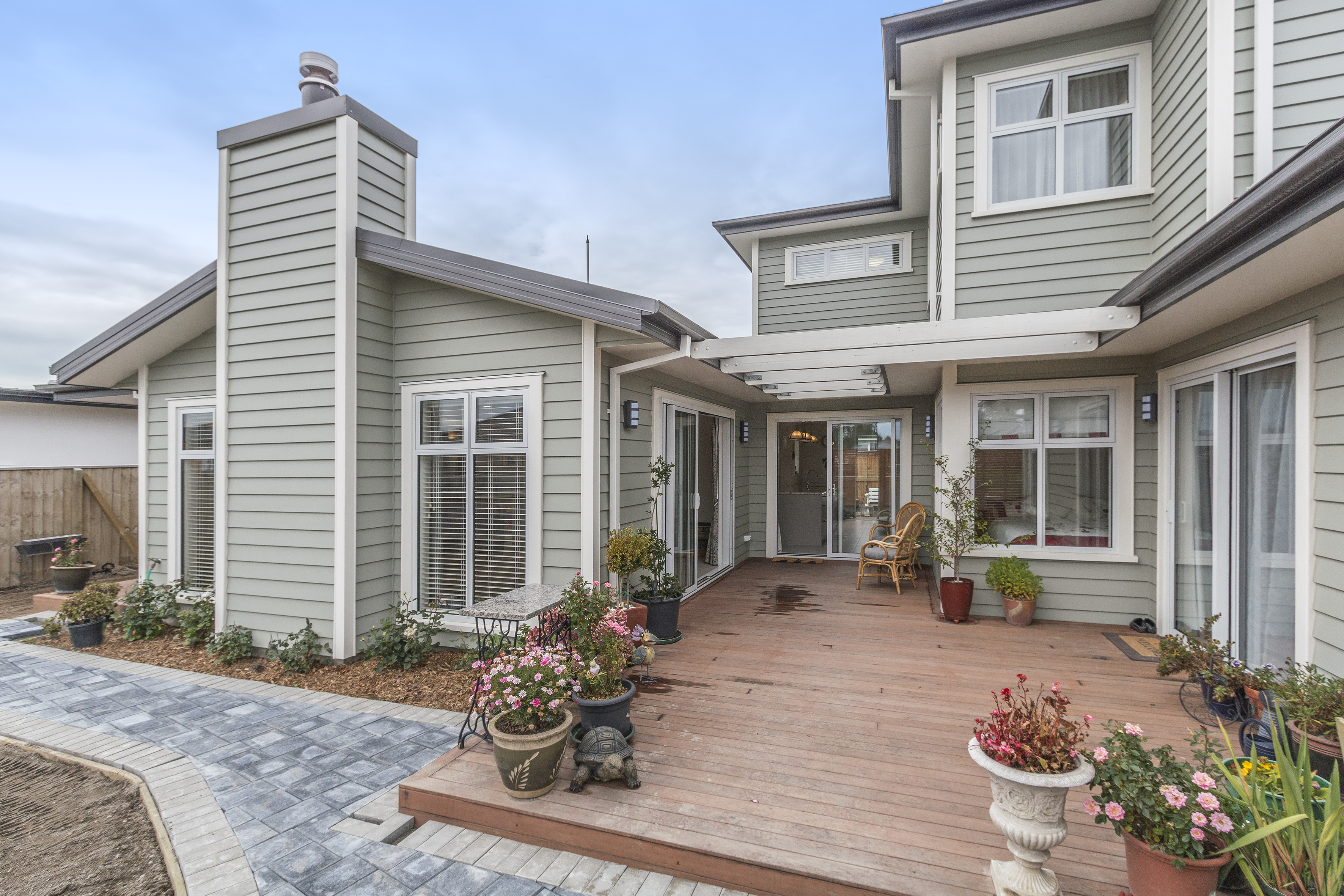 Proudly perched on a corner site, this new Canterbury abode presents a modern twist on traditional villa living. The exterior boasts all the hallmarks of a well-crafted design – wonderful weatherboard cladding, detailed garage doors and classic portico entrance. It’s even got the white picket fence.